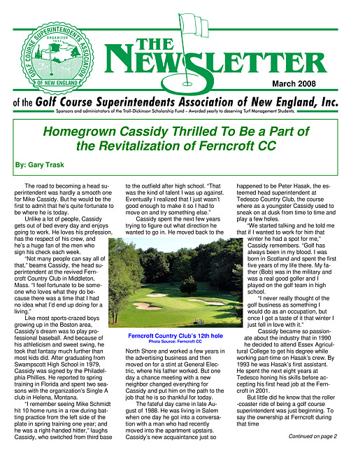 The newsletter of the Golf Course Superintendents Association of New England, Inc. (2008 March)