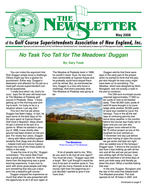 The newsletter of the Golf Course Superintendents Association of New England, Inc. (2008 May)