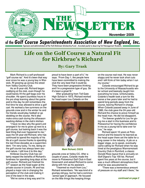 The newsletter of the Golf Course Superintendents Association of New England, Inc. (2009 November)