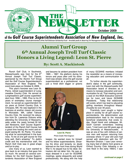 The newsletter of the Golf Course Superintendents Association of New England, Inc. (2009 October)