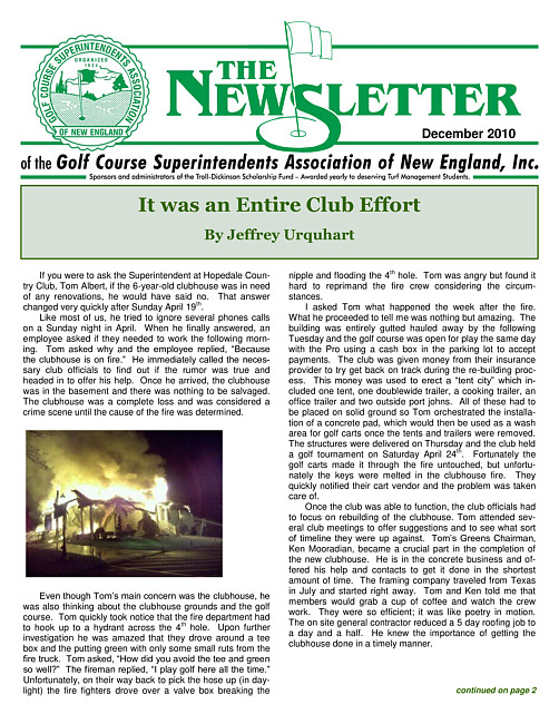 The newsletter of the Golf Course Superintendents Association of New England, Inc. (2010 December)