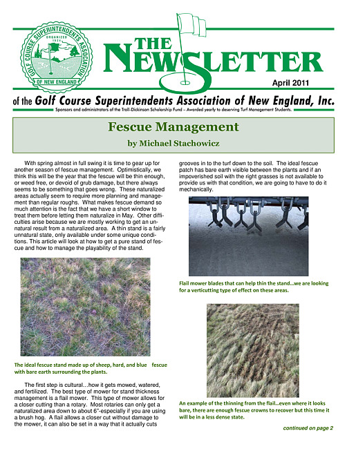 The newsletter of the Golf Course Superintendents Association of New England, Inc. (2011 April)