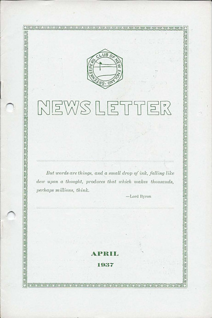 Newsletter. Vol. 9 no. 4 (1937 April)