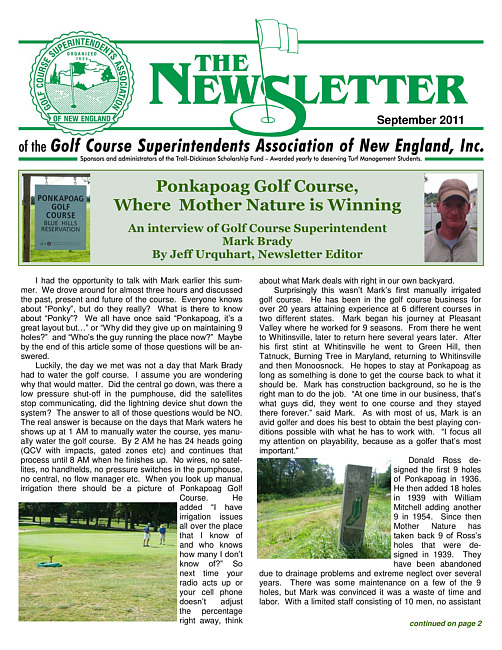 The newsletter of the Golf Course Superintendents Association of New England, Inc. (2011 September)