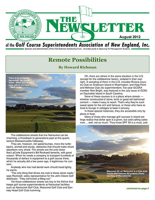 The newsletter of the Golf Course Superintendents Association of New England, Inc. (2012 August)