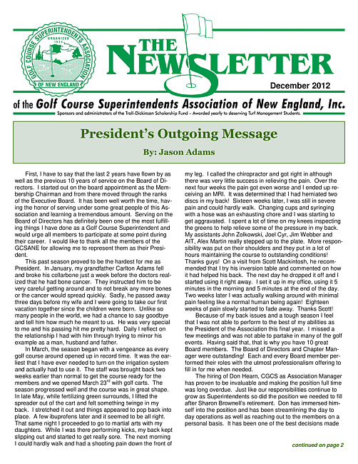 The newsletter of the Golf Course Superintendents Association of New England, Inc. (2012 December)