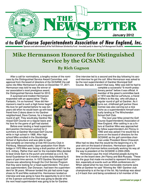 The newsletter of the Golf Course Superintendents Association of New England, Inc. (2012 January)
