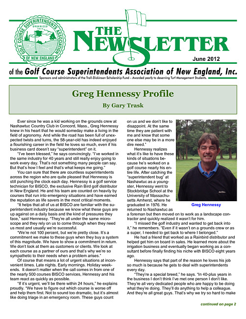The newsletter of the Golf Course Superintendents Association of New England, Inc. (2012 June)