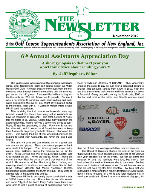 The newsletter of the Golf Course Superintendents Association of New England, Inc. (2012 November)