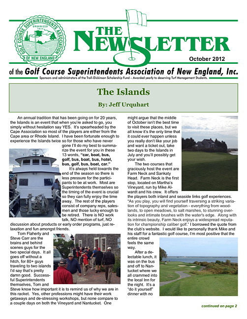 The newsletter of the Golf Course Superintendents Association of New England, Inc. (2012 October)