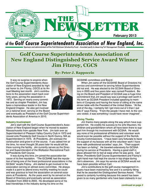The newsletter of the Golf Course Superintendents Association of New England, Inc. (2013 February)