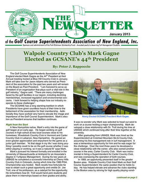The newsletter of the Golf Course Superintendents Association of New England, Inc. (2013 January)