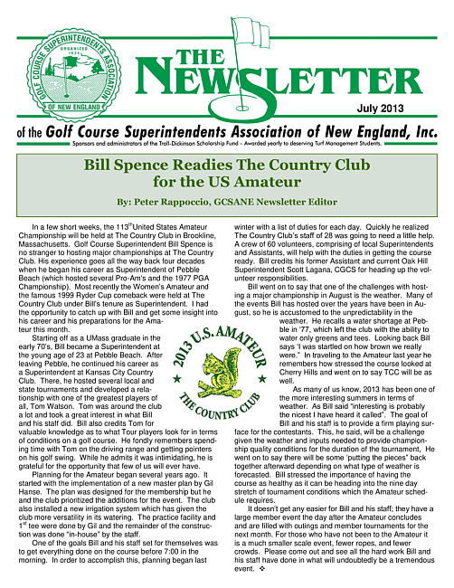 The newsletter of the Golf Course Superintendents Association of New England, Inc. (2013 July)