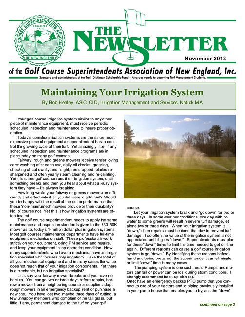 The newsletter of the Golf Course Superintendents Association of New England, Inc. (2013 November)