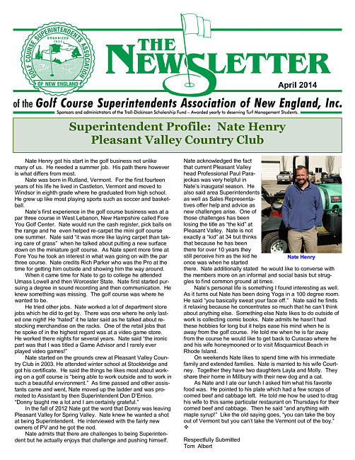 The newsletter of the Golf Course Superintendents Association of New England, Inc. (2014 April)