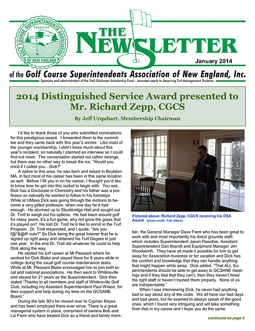 The newsletter of the Golf Course Superintendents Association of New England, Inc. (2014 January)