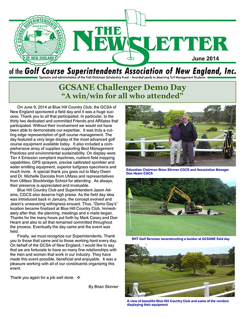 The newsletter of the Golf Course Superintendents Association of New England, Inc. (2014 June)