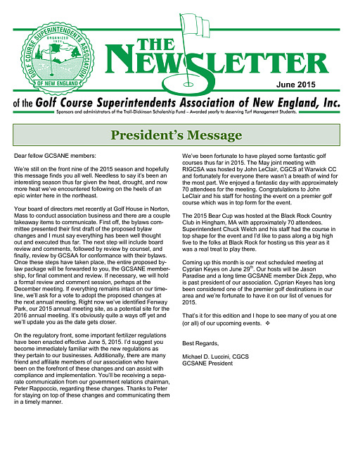 The newsletter of the Golf Course Superintendents Association of New England, Inc. (2015 June)