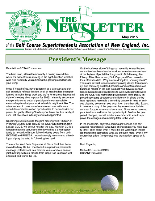 The newsletter of the Golf Course Superintendents Association of New England, Inc. (2015 May)