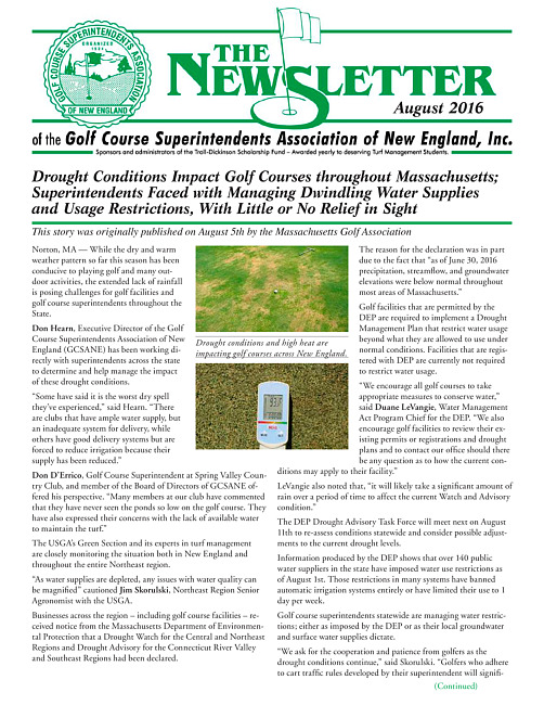 The newsletter of the Golf Course Superintendents Association of New England, Inc. (2016 August)