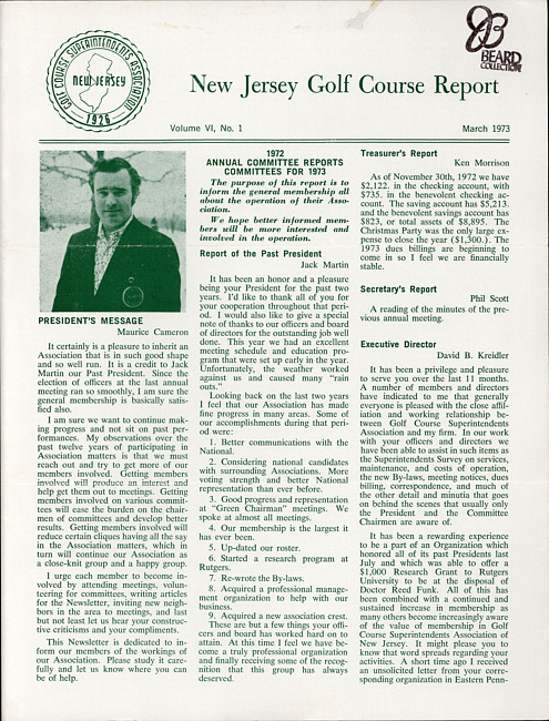 New Jersey golf course report. Vol. 6 no. 1 (1973 March)