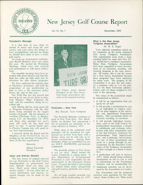 New Jersey golf course report. Vol. 3 no. 7 (1970 December)