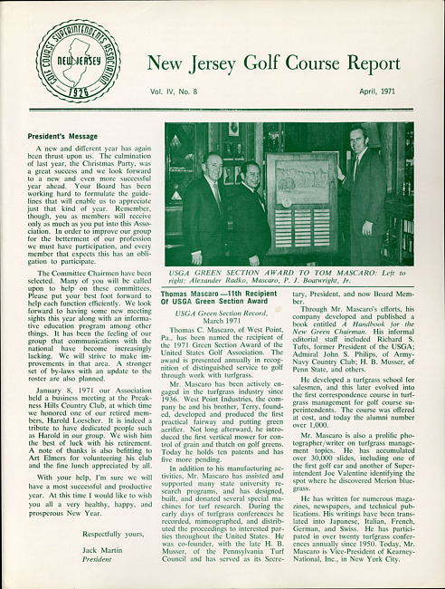 New Jersey golf course report. Vol. 4 no. 8 (1971 April)