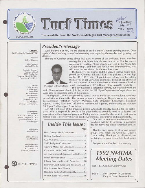 Turf times. Vol. 21 no. 12 (1992 October)