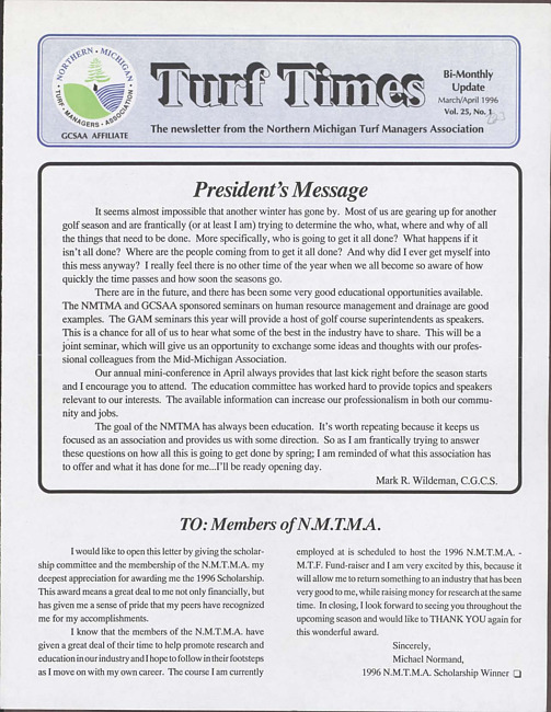 Turf times. Vol. 25 no. 2 (1996 March/April)