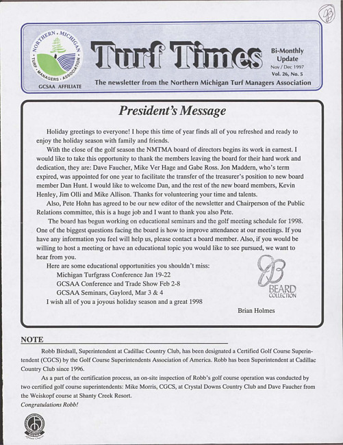 Turf times. Vol. 26 no. 5 (1997 November/December)
