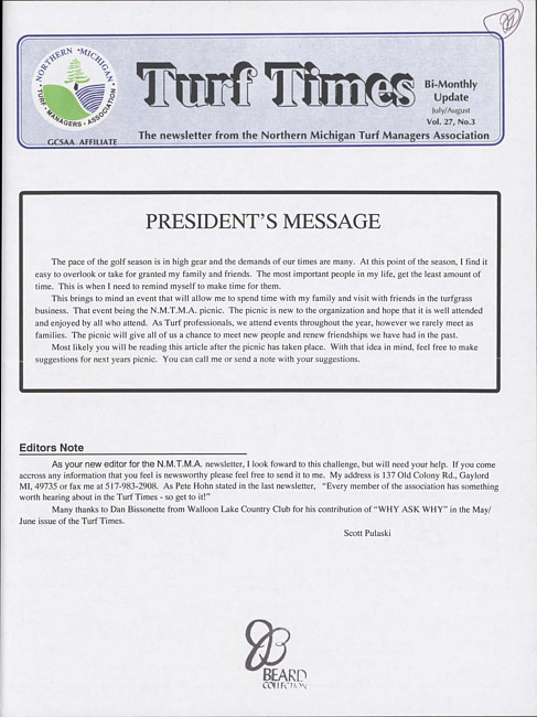 Turf times. Vol. 27 no. 3 (1998 July/August)