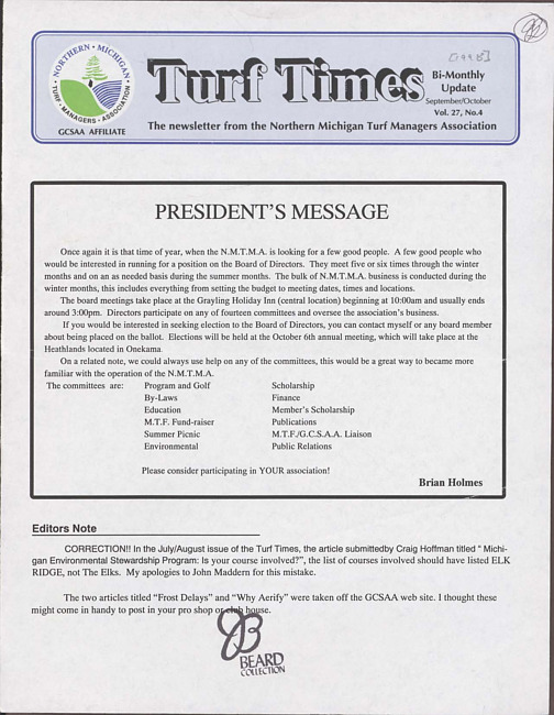 Turf times. Vol. 27 no. 4 (1998 September/October)