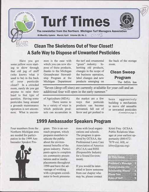Turf times. Vol. 28 no. 1 (1999 March/April)
