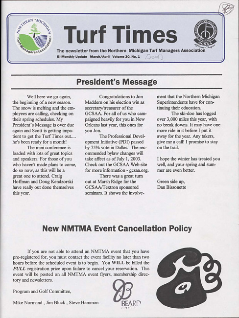 Turf times. Vol. 30 no. 1 (2001 March/April)
