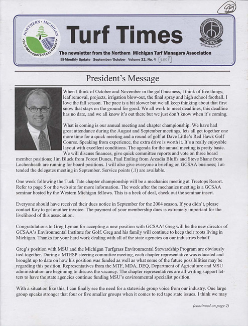 Turf times. Vol. 32 no. 4 (2003 September/October)