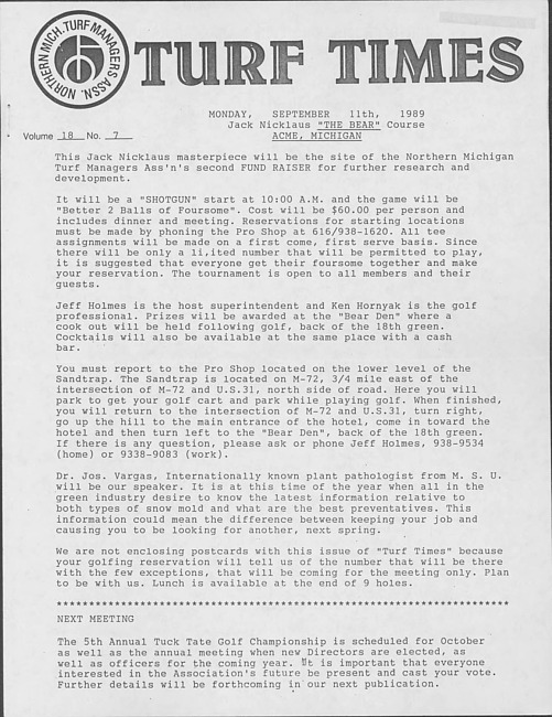 Turf times. Vol. 18 no. 7 (1989 September)