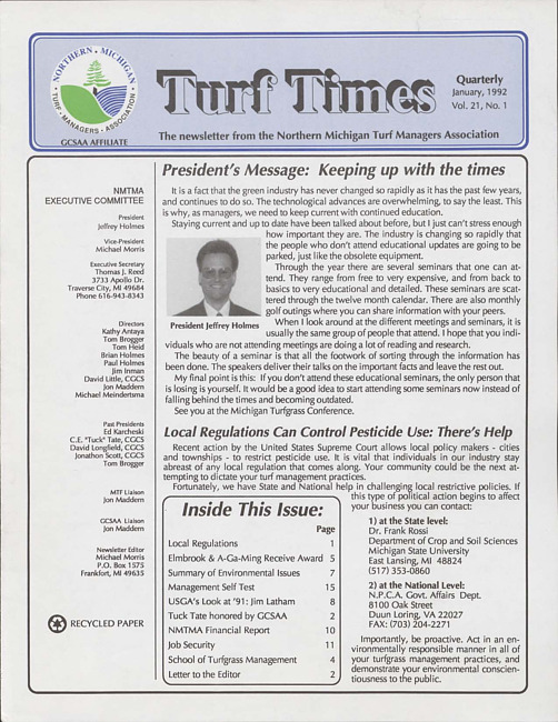 Turf times. Vol. 21 no. 1 (1992 January)