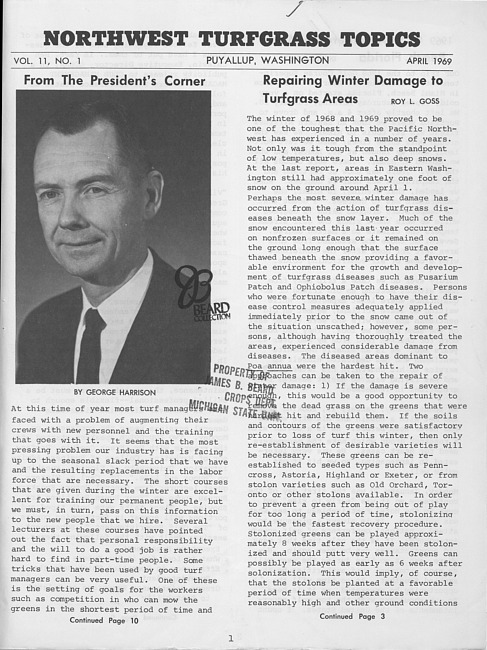 Northwest turfgrass topics. Vol. 11 no. 1 (1969 April)
