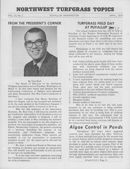 Northwest turfgrass topics. Vol. 12 no. 1 (1970 April)