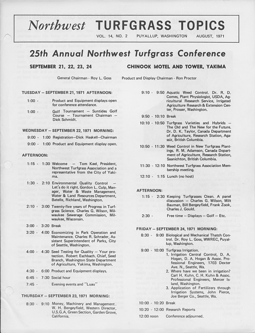 Northwest turfgrass topics. Vol. 14 no. 2 (1971 August)