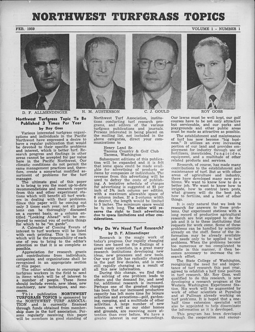 Northwest turfgrass topics. Vol. 1 no. 1 (1959 February)