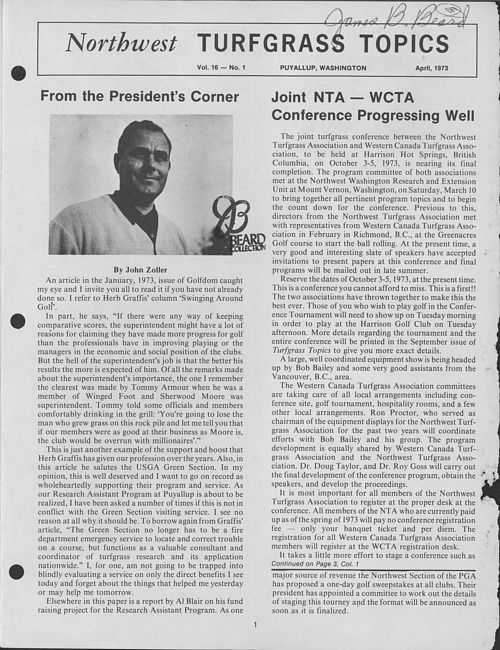 Northwest turfgrass topics. Vol. 16 no. 1 (1973 April)
