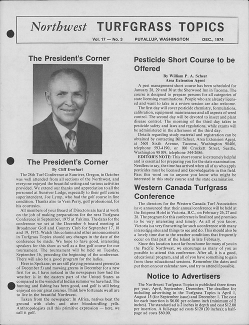 Northwest turfgrass topics. Vol. 17 no. 3 (1974 December)