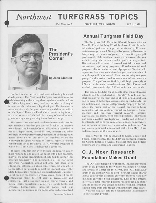 Northwest turfgrass topics. Vol. 19 no. 1 (1976 April)