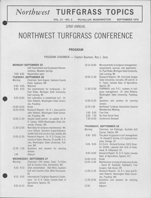 Northwest turfgrass topics. Vol. 21 no. 2 (1978 September)