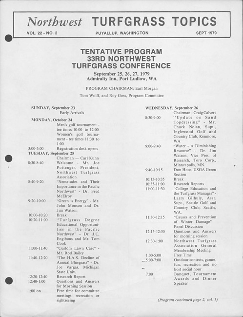 Northwest turfgrass topics. Vol. 22 no. 2 (1979 September)