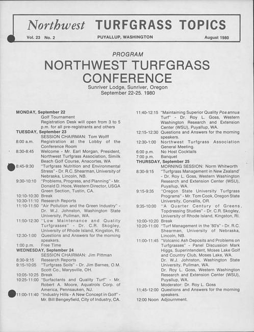 Northwest turfgrass topics. Vol. 23 no. 2 (1980 August)