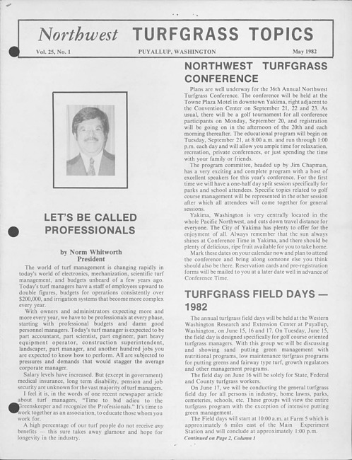 Northwest turfgrass topics. Vol. 25 no. 1 (1982 May)