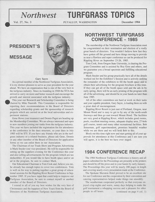 Northwest turfgrass topics. Vol. 27 no. 3 (1984 December)