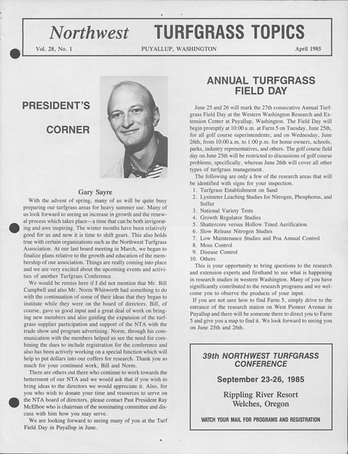 Northwest turfgrass topics. Vol. 28 no. 1 (1985 April)